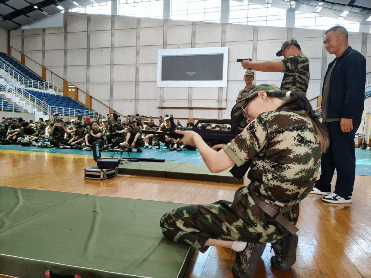 军训中别开生面的模拟打靶项目,极大地激发了同学们的训练热情。在教官的专业指导下,同学们匍匐、瞄准、击发,亲身体验军事基础技能的魅力。整个过程紧张而有序,现场洋溢着跃跃欲试的兴奋感。这项活动将严肃的军事训练与生动的实践体验完美结合,真正做到了寓教于乐,让同学们在沉浸式体验中增强了对国防事业的直观感受。