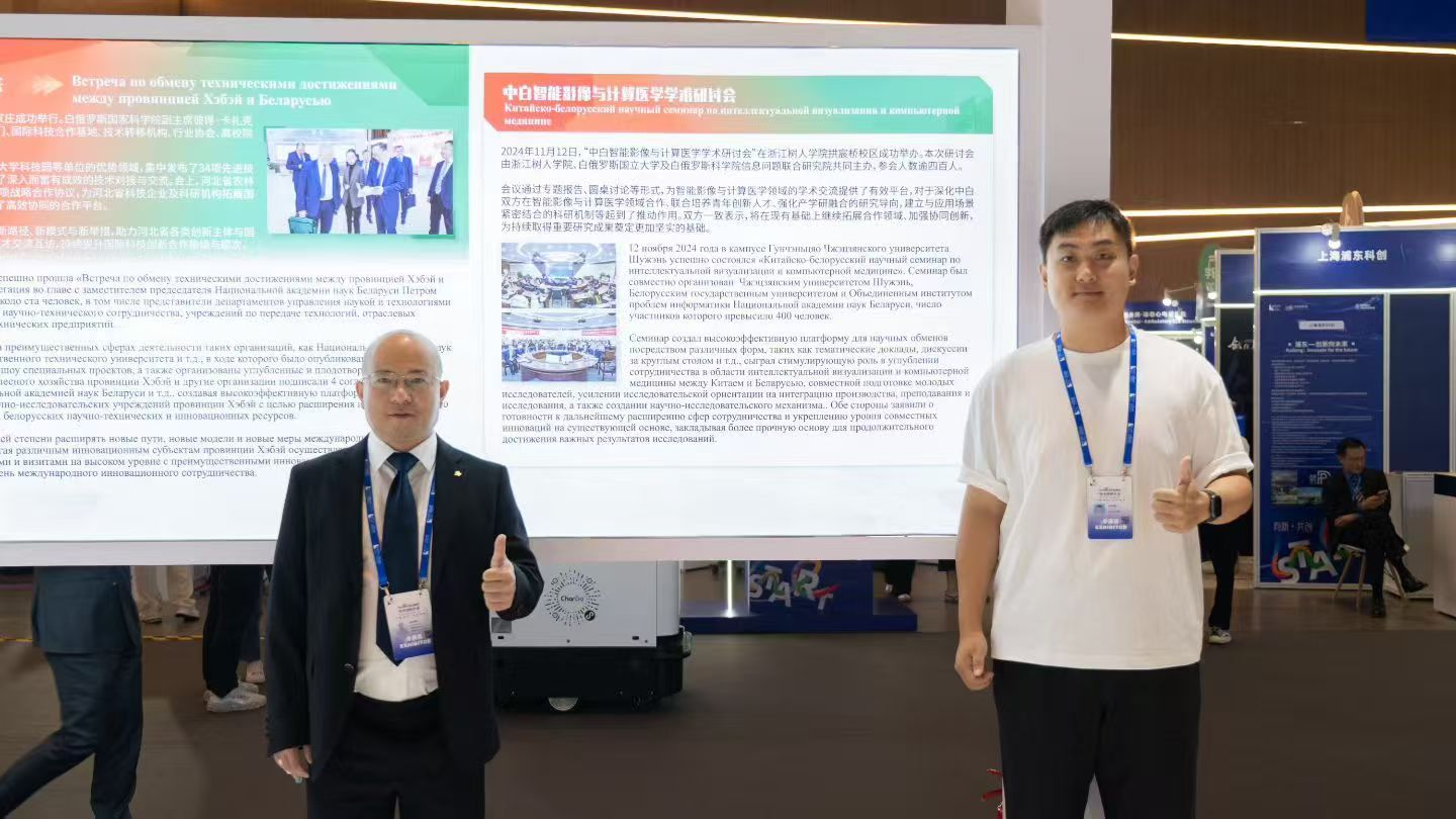 在科技人文交流板块,今年会叶时平副校长领衔的遥感图像处理与应用国际科技合作基地联合白俄罗斯多家高校与科研机构,以大会视频和展板的形式展示了“中白智能影像与计算医学学术研讨会”等系列学术活动。双方围绕人工智能、遥感影像、计算机视觉及医学影像等前沿方向开展深入研讨,持续推动联合科研、技术攻关与人才共育,为中白产学研融合与创新成果转化注入持续动力。