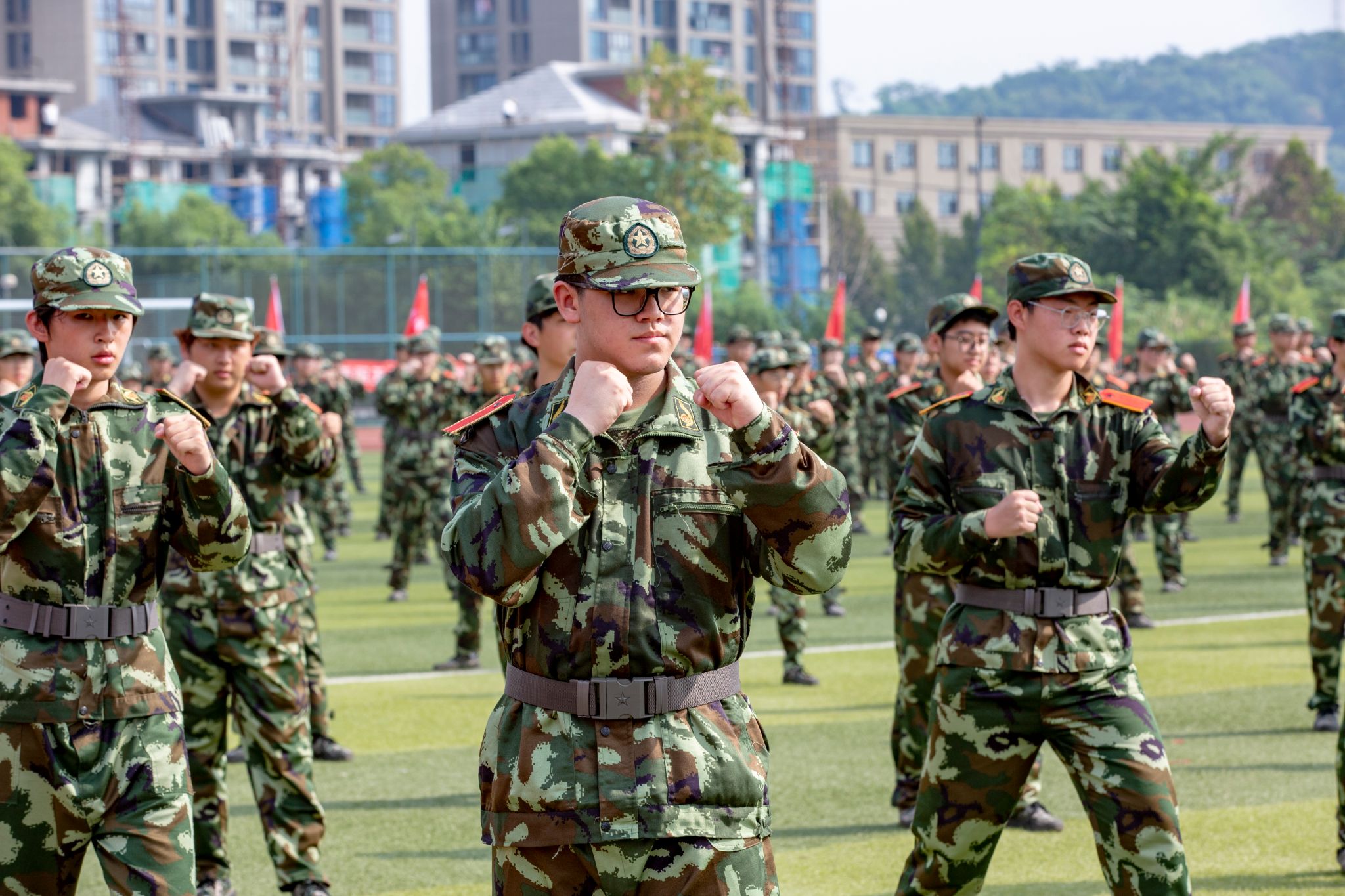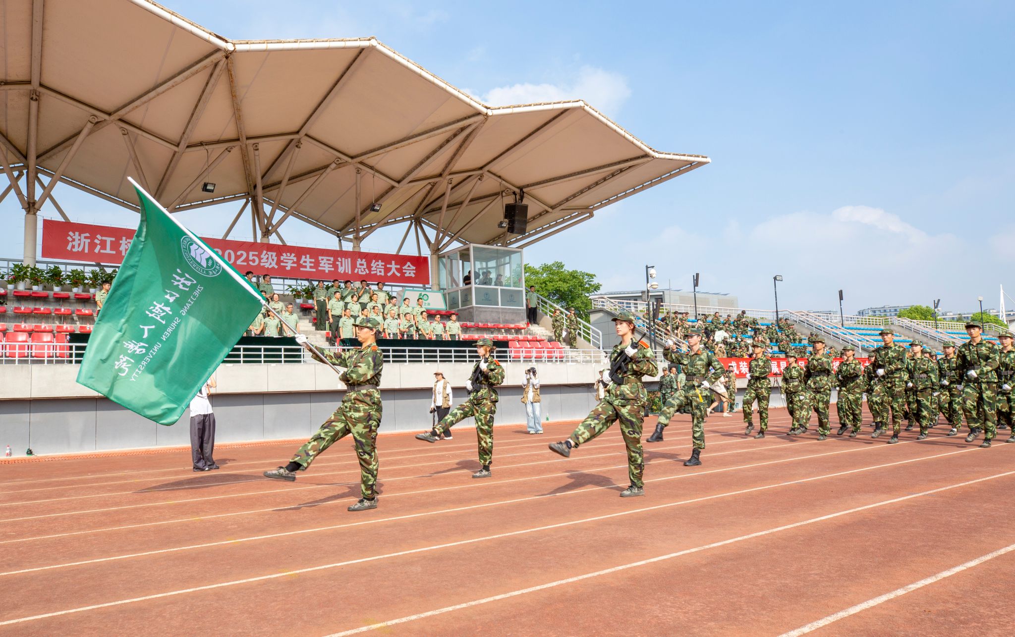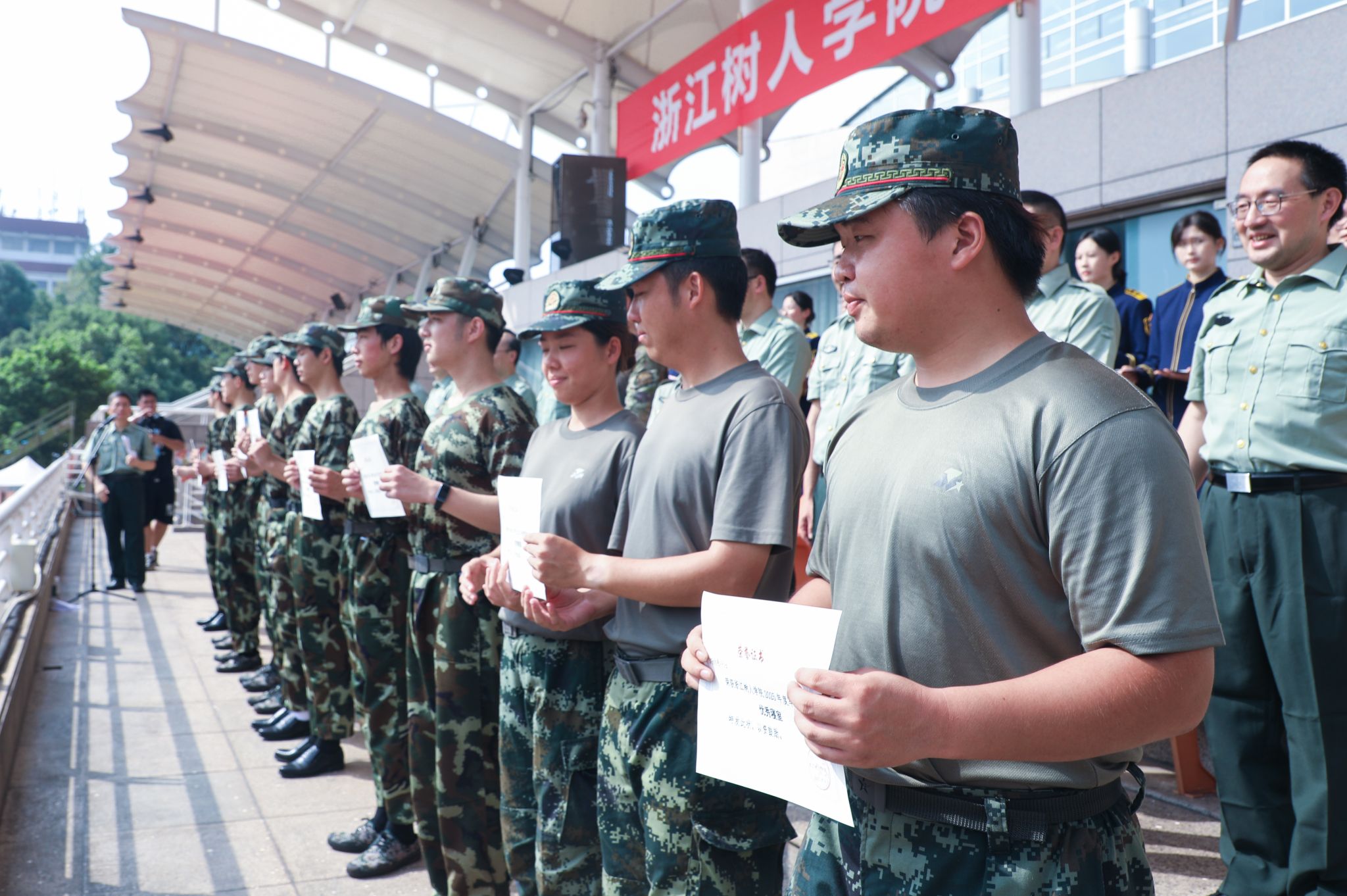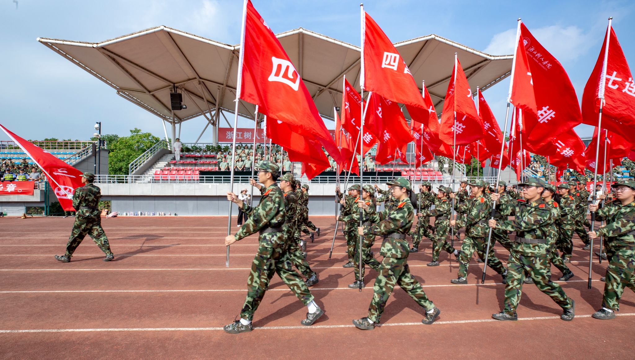 自开训以来,同学们完成了站军姿、踢正步、走队列、方阵展演、军体拳、擒敌拳、军歌等军事技能训练科目,进行了军事理论、国家和国防安全教育、消防安全讲座、防范电信网络诈骗培训、交通安全、红十字急救培训、传染病预防、心理健康、红歌、军歌、校歌、内务整理等内容的学习。军训期间,还穿插观看了文艺晚会,开展了拉歌、游园会等活动。军训结束,但青春新征程即将开始。愿同学们带着军训赋予的力量,在树人书写更精彩的人生篇章,在强国建设、民族复兴的伟大征程中贡献青春力量。