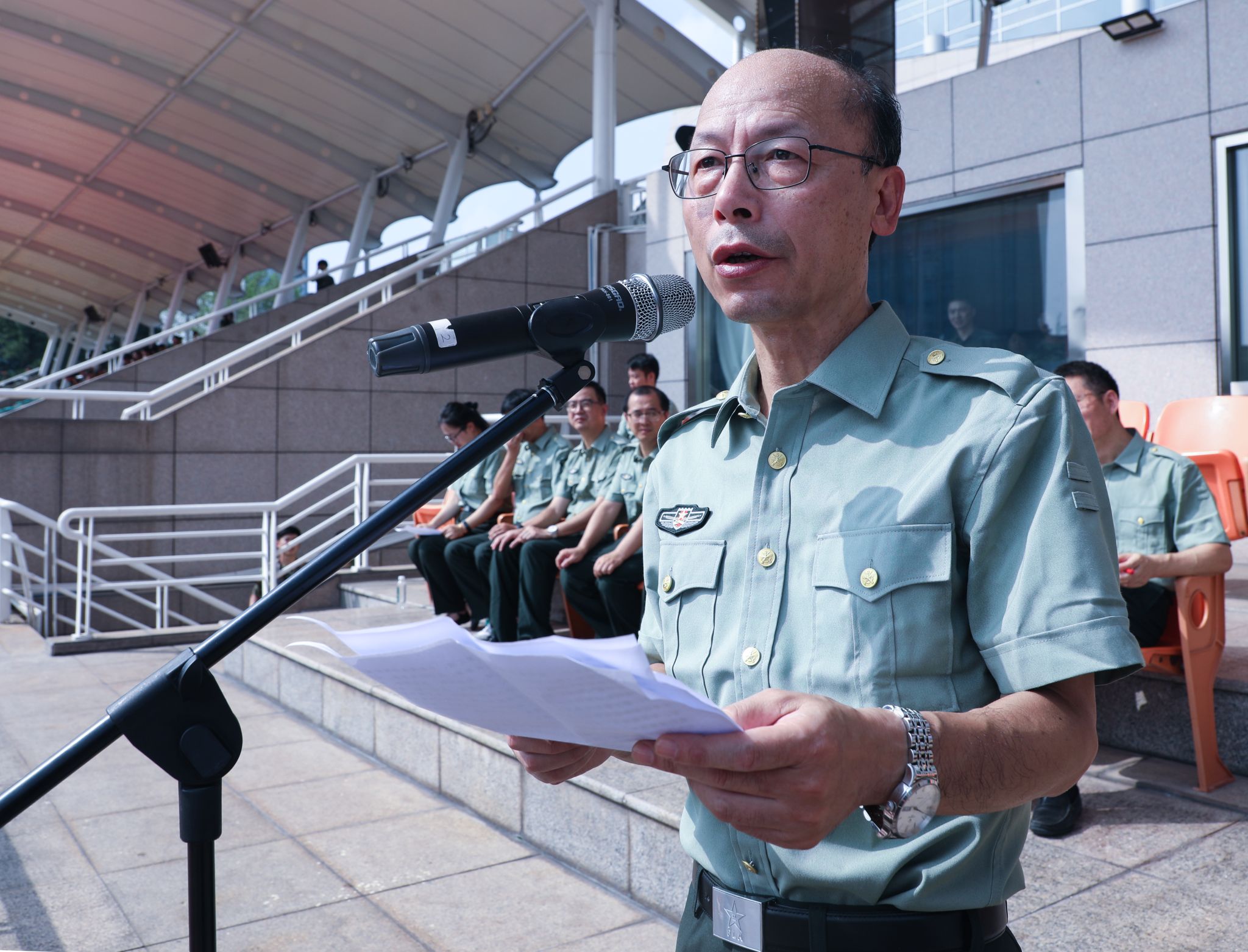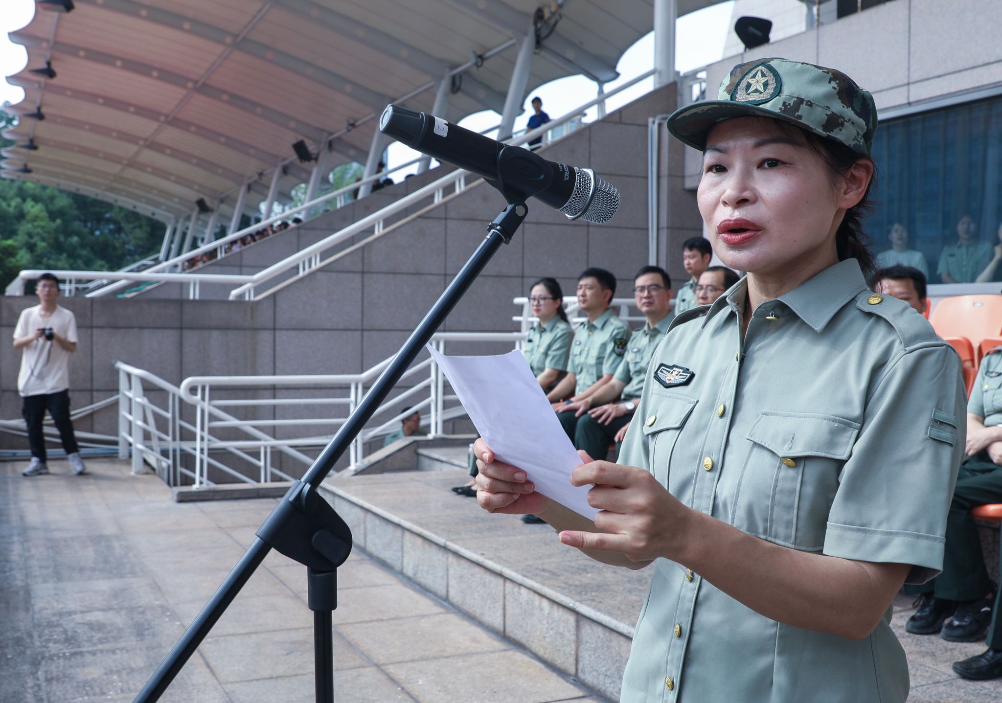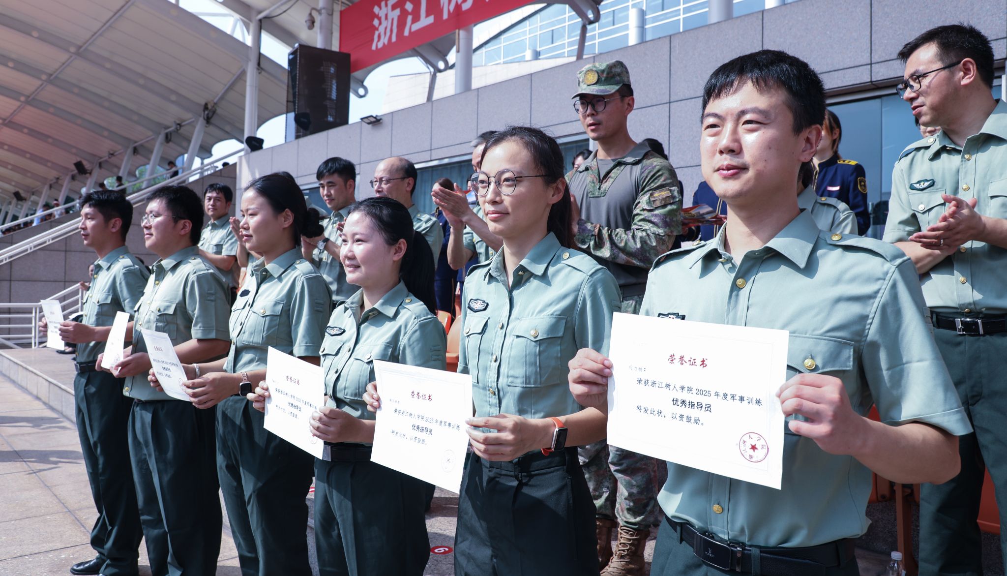 大会表彰环节,陈新民、王方分别宣读军训团表彰文件,对军训期间表现突出的先进集体与个人予以肯定。与会领导为获得 “先进排”“内务卫生优胜寝室”“优胜方阵” 荣誉的集体以及 “优秀教官”“优秀指导员”“优秀学员” 称号的个人依次颁发荣誉证书。