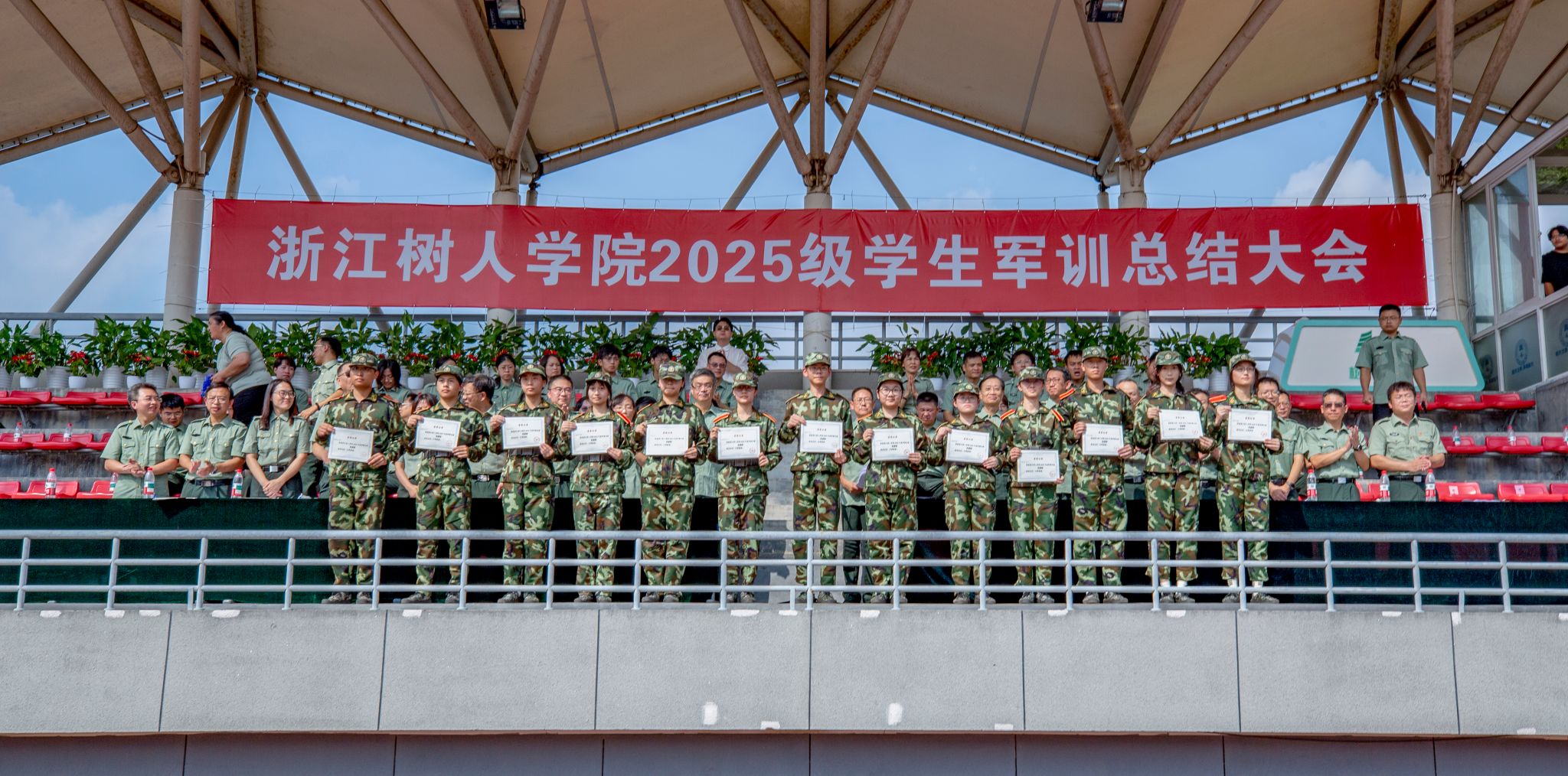 在熟悉的《树人之歌》旋律中,2025级学生军训工作画上了圆满的句号。