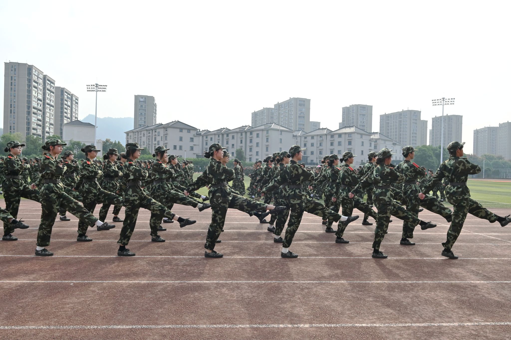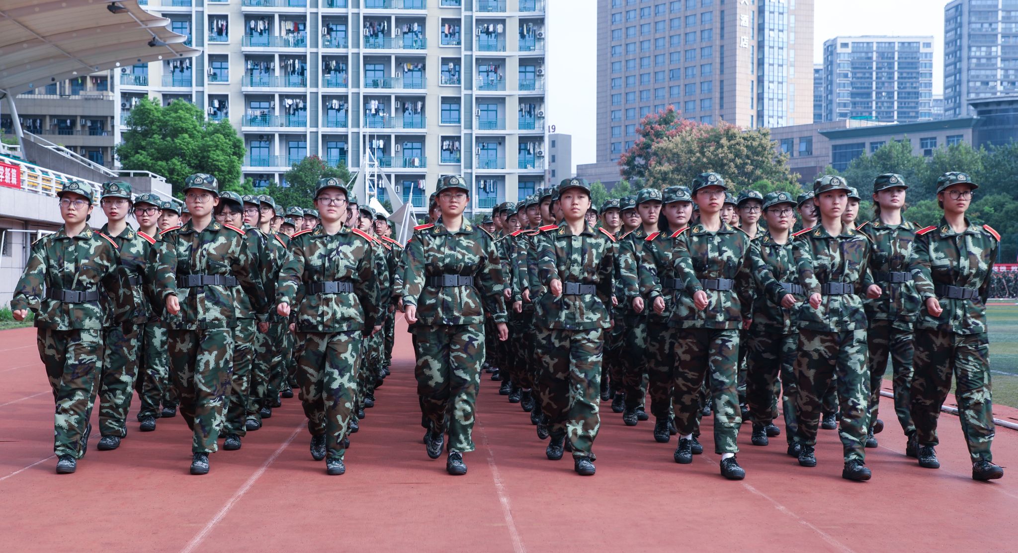 据悉,本次军训是深入落实《中华人民共和国国防教育法》、强化学生国防意识的重要举措,自 9 月 15日启动以来,分两校区同步开展,共编设 9 个营、18 个连、80 个排,参训新生规模达 4446 人,是历年来参训人数最多的一次。军训教官队伍兼具专业与温度——22 位来自中国人民解放军 94782 部队的官兵,以过硬的军事素养、严谨的作风为新生树立标杆;68 位 “树人先锋营” 退伍学长学姐,则用亲身经历分享军旅故事,成为新生身边的 “榜样力量”,其中杨汛桥校区 68 位教官均来自先锋营,“学长带训” 的模式既拉近了与新生的距离,更让军人精神在校园中代代相传。