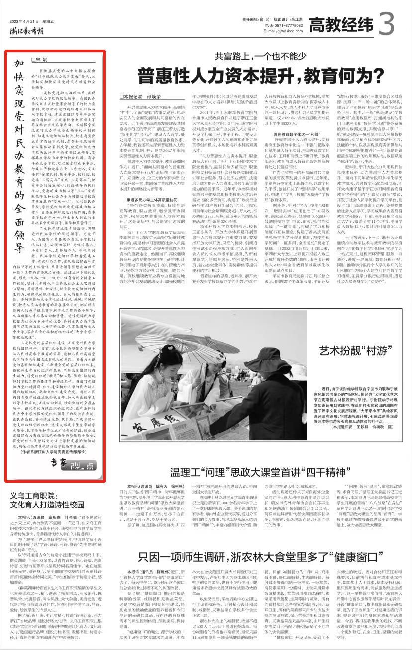 5月17日,浙江省教育厅新闻办公室、浙江教育报刊总社公布了2022浙江教育年度新闻人物影响力人物评选结果。经读者推荐、专家评审,今年会科研与社会合作处唐宝康老师获2022浙江教育年度影响力人物。报道链接:https://mp.weixin.qq.com/s/AQJu8jw1iJozy1AYFhkeig唐宝康获奖感言:甘当“桥梁”,助力乡村振兴非常荣幸能够入选2022浙江教育年度影响力人物。这给我带来了满满的能量、信心和决心,鼓励我继续前行。4年多来,作为全省40余所高校派驻乡村振兴帮促村的一分子,...